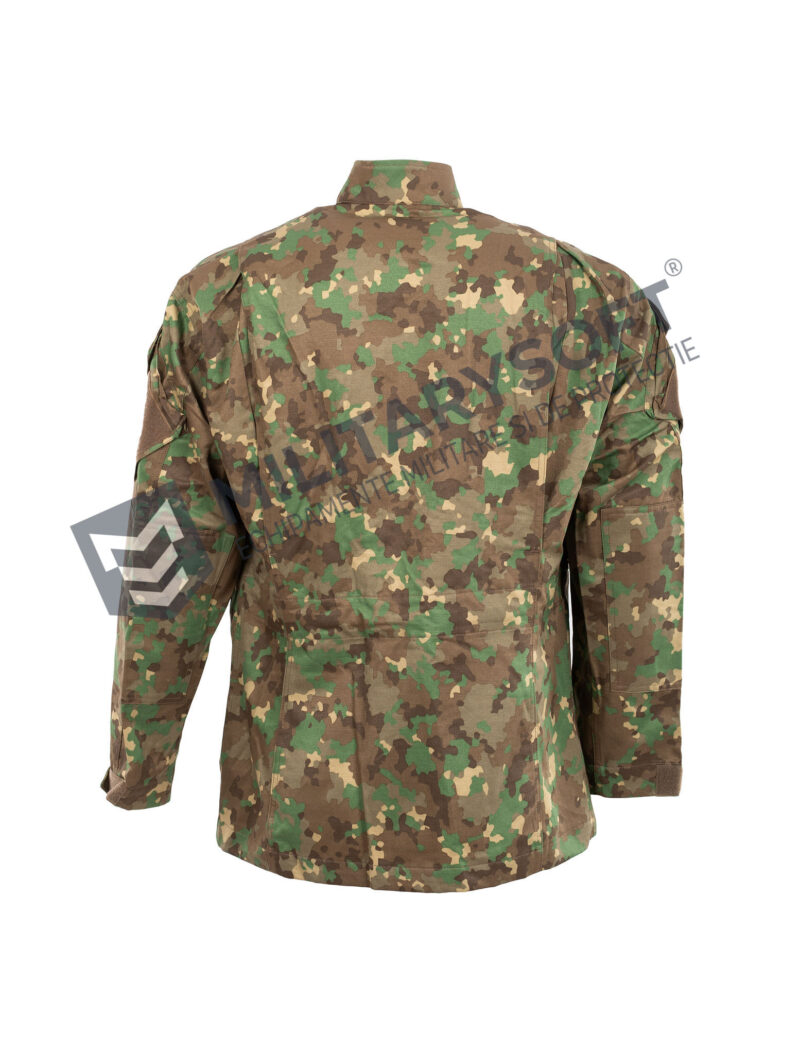 Produsul este confectionat din tesatura ripstop imprimat in culori mozaic pentru forte terestre, forte aeriene, forte navale , compozitie fibroasa amestec 50%nylon+50%cotton, greutate specifica de circa 220 gr/m2. Materialul de confectie este o tesatura ranforsata, are rezistente foarte ridicate la rupere si sfasiere. Materialul are comportare forta buna in purtare, rezistenta foarte mare la abraziune.