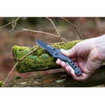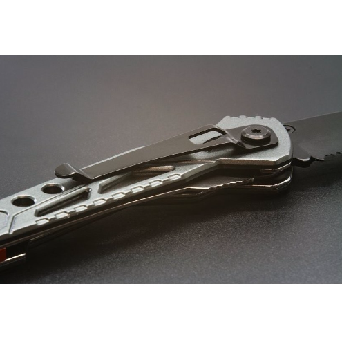 Lama briceagului este realizata din otel inoxidabil 420 cu acoperire de oxid negru, care este un aliaj de otel martensistic cu continut ridicat de carbon(C), crom(CR), molibden(MO) si vanadiu(V) cu rezistenta excelenta la uzura, rezistenta la coroziune, rezistenta la taiere si duritate ridicata, utilizat in special pentru cutite de bucatarie. Datorita tratamentului termic la care este supus acest otel are o duritate Rockwell de 50 HRC. Acoperirea cu oxid negru este un procesul de acoperire a materialelor feroase, cum ar fi otelul inoxidabil, printr-un proces de acoperire chimica, proces care intareste otelul si ii ofera o rezistenta mai mare la coroziune. Manerul este reazalizat din aluminiu anodizat de inalta calitate folosit in special in industria aeronautica. Anodizarea este un proces electrolitic de pasivizare utilizat pentru a creste grosimea stratului de oxid natural de pe suprafata pieselor metalice. Prin anodizare creste rezistenta la coroziune si uzura a aliajului de aluminiu si se asigura o aderenta mai buna a grundurilor de vopsea aplicate peste acesta, rezultant un “grip” mult mai bun in utilizare.