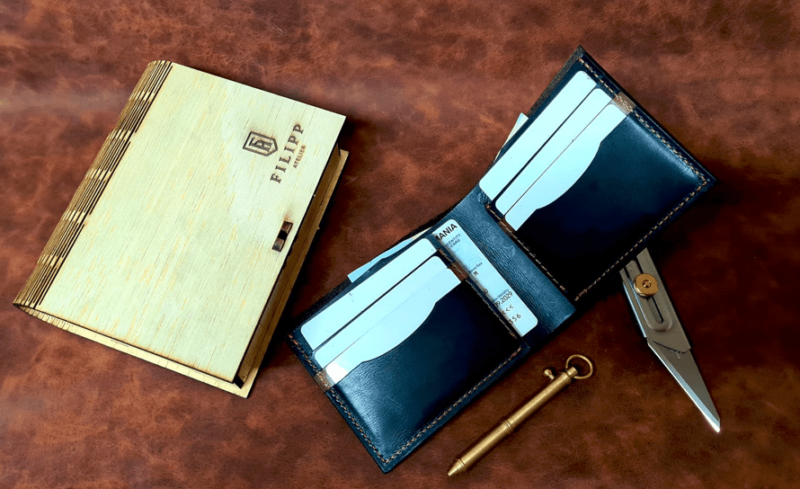 Portofel din piele naturală, realizat manual.