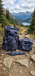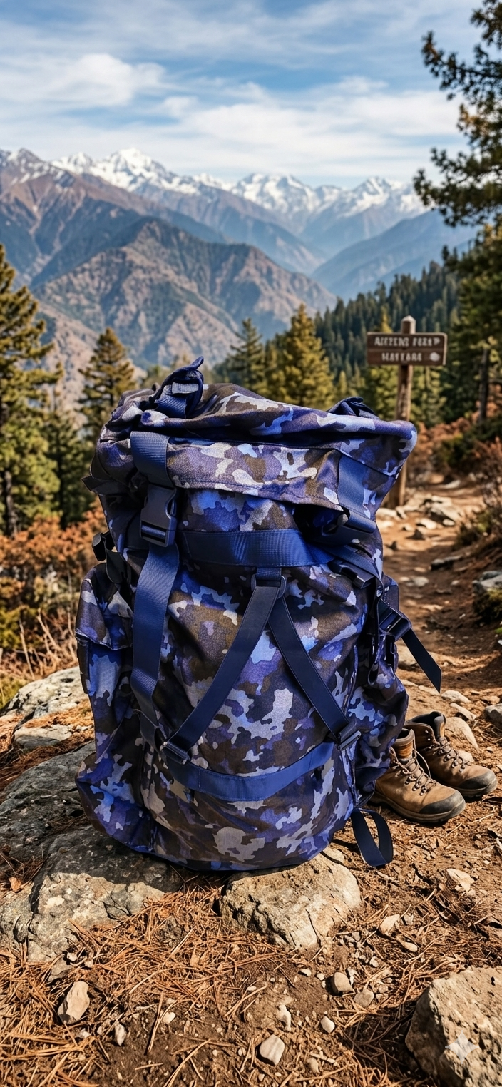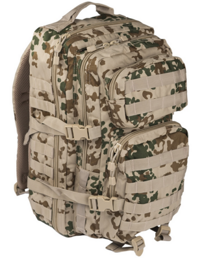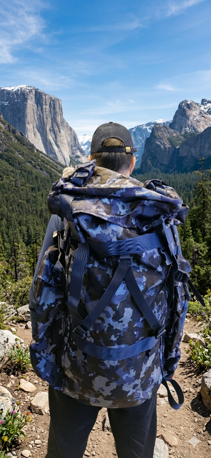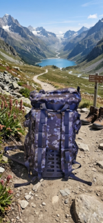 Rucsac tactic de tip militar, conceput pentru rezistență și funcționalitate în condiții solicitante. Modelul are un design camuflaj în nuanțe de albastru-gri, ideal atât pentru activități outdoor, cât și pentru uz urban.
