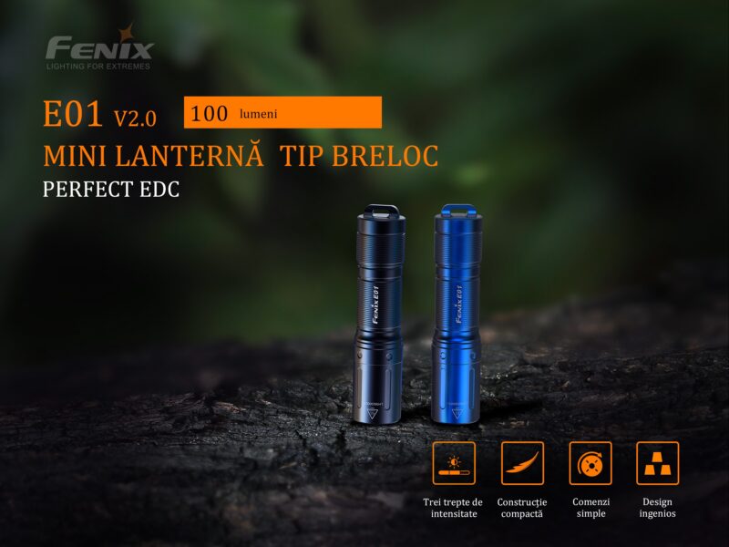 Fenix E01 V2.0 – Lanternă EDC – 100 Lumeni – 35 Metri – Negru