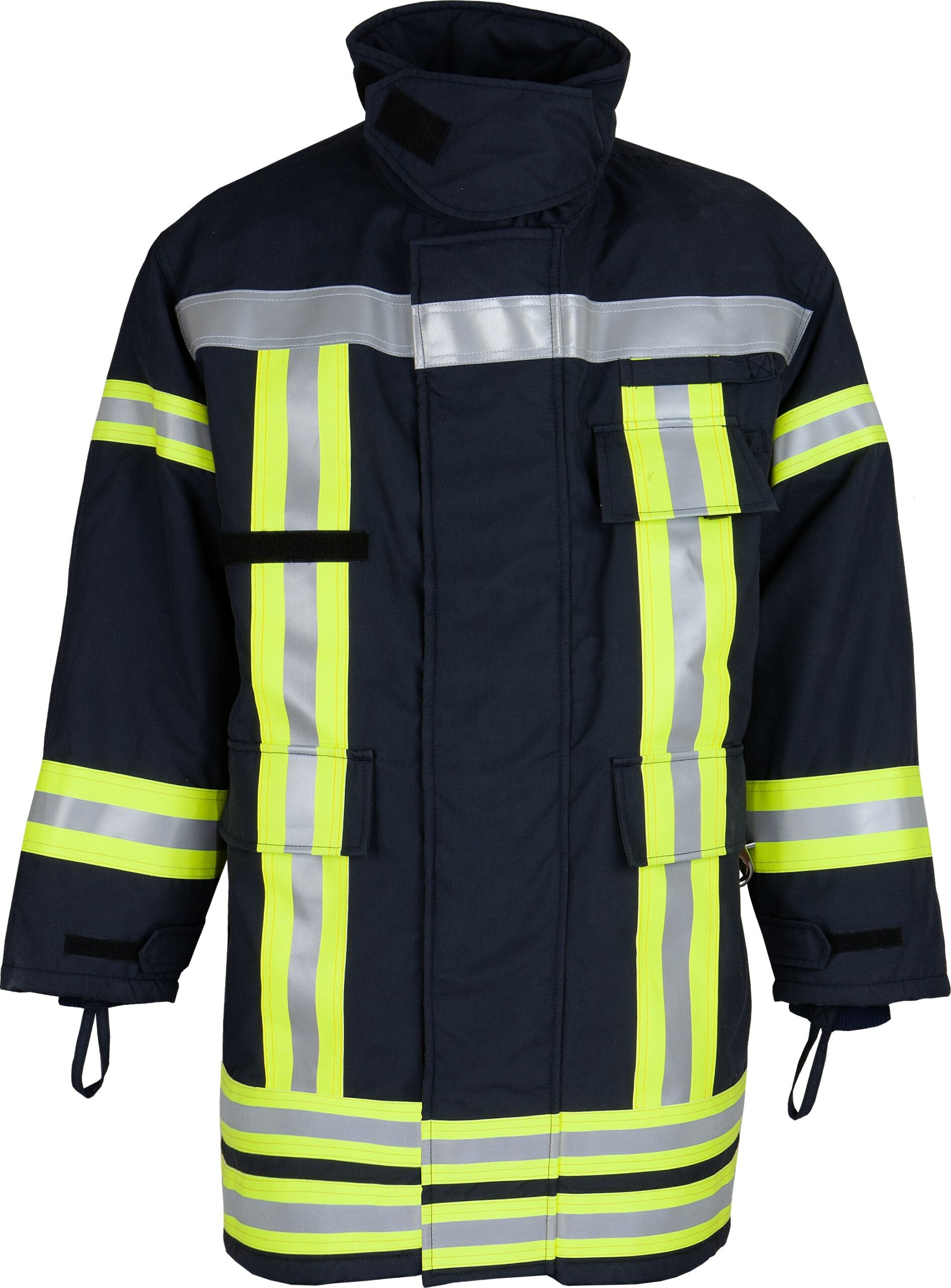 Gât mare prevăzut cu broască, fixat cu cârlig și bucle Velcro de fixare. Manșonul inferior poate fi reglat cu broșă și bandă de fixare pentru cârlig și buclă, manșonul inferior este prevăzut cu manșete interne tricotate Nomex®