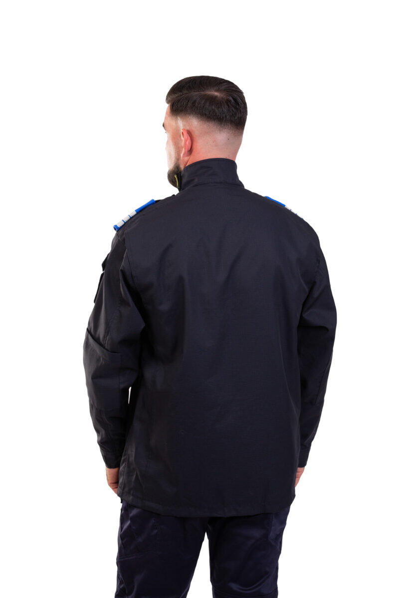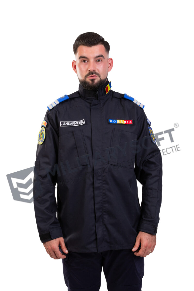 Bluza se realizează din țesătură ripstop de culoare bleumarin-navy și este prevăzută cu epoleți, pentru purtarea gradelor, se încheie cu fermoar și se poartă introdusă în / peste pantaloni. Pe piept sunt aplicate două buzunare oblice, cu clape închise cu velcro la partea superioară. În partea stângă, deasupra buzunarului, se aplică suport tip velcro pentru ecusonul nominal brodat. Mânecile au la partea superioară câte un buzunar cu clapă.
