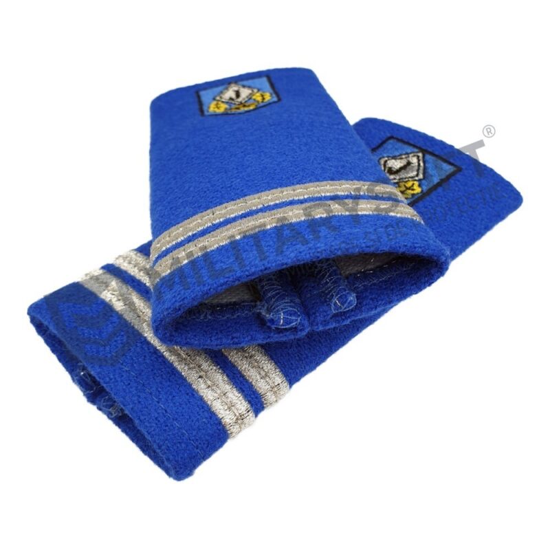 Suportul de grad pentru locotenent jandarmerie este confectionat din paspoal de culoare bleu-jandarm avand brodate insemnele specifice gradului cu fir metalizat alb-argintiu. Semnul de arma este brodat sub forma de scut cu fir din poliester de culoare albastrã si are elementele specifice jandarmeriei avand in mijloc un romb brodat cu fir metalizat de culoare alb-argintiu, iesind dintr-o cununã formatã din trei frunze de stejar brodate cu fir din metalizat de culoare galben-auriu. In centrul rombului se brodeaza litera “J”, stilizatã cu fir din poliester de culoare neagrã. –