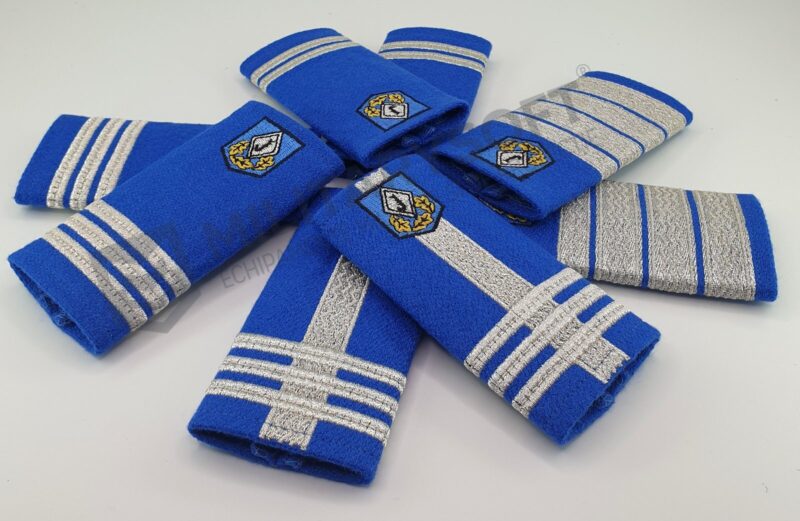 Este confectionat din paspoal de culoare bleu-jandarm avand brodate insemnele specifice gradului cu fir metalizat alb-argintiu. Semnul de arma este brodat sub forma de scut cu fir din poliester de culoare albastrã si are elementele specifice jandarmeriei avand in mijloc un romb brodat cu fir metalizat de culoare alb-argintiu, ieºind dintr-o cununã formatã din trei frunze de stejar brodate cu fir din metalizat de culoare galben-auriu. In centrul rombului se brodeaza litera “J”, stilizatã cu fir din poliester de culoare neagrã.