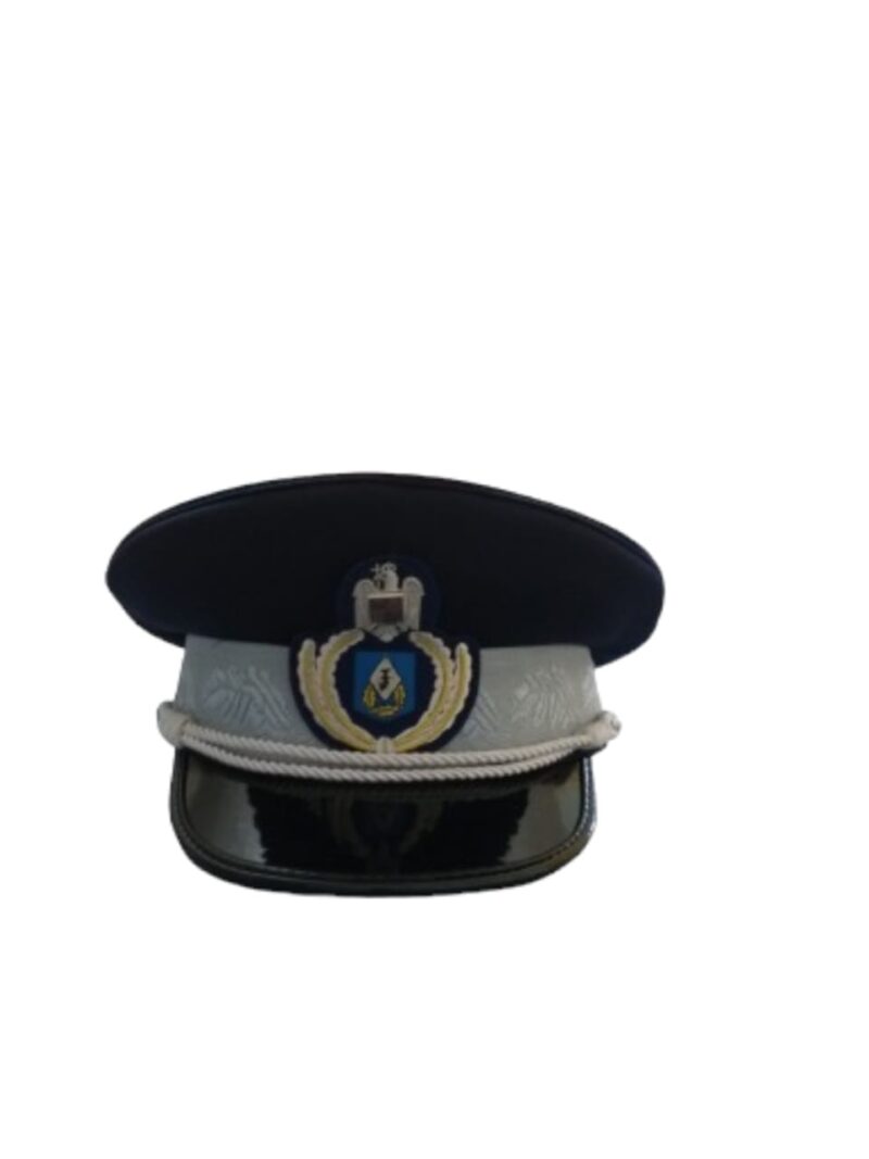 Pe exterior are o banda alba cu frunze ecaterina, pe care se aplica emblema specifica. Are prevazute frunze de stejar pe cozoroc