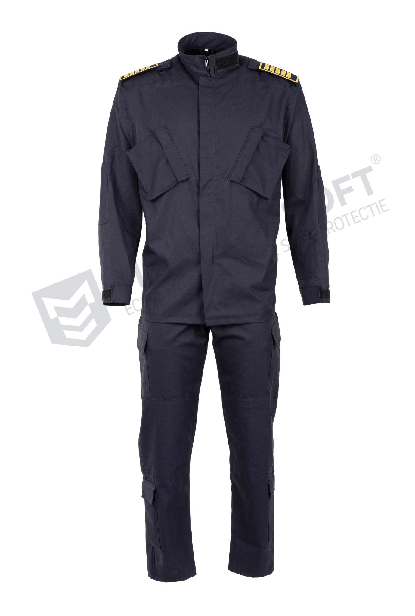 Bluza se realizează din țesătură ripstop de culoare bleumarin-navy și este prevăzută cu epoleți, pentru purtarea gradelor, se încheie cu fermoar și se poartă introdusă în / peste pantaloni. Pe piept sunt aplicate două buzunare oblice, cu clape închise cu velcro la partea superioară. În partea stângă, deasupra buzunarului, se aplică suport tip velcro pentru ecusonul nominal brodat. Mânecile au la partea superioară câte un buzunar cu clapă.