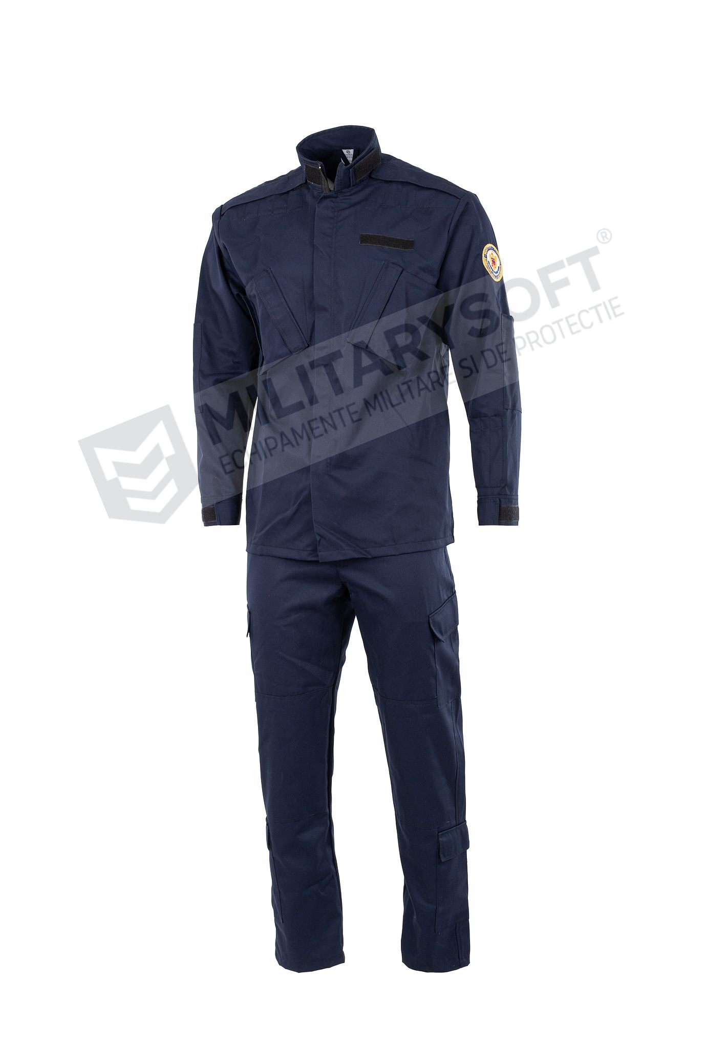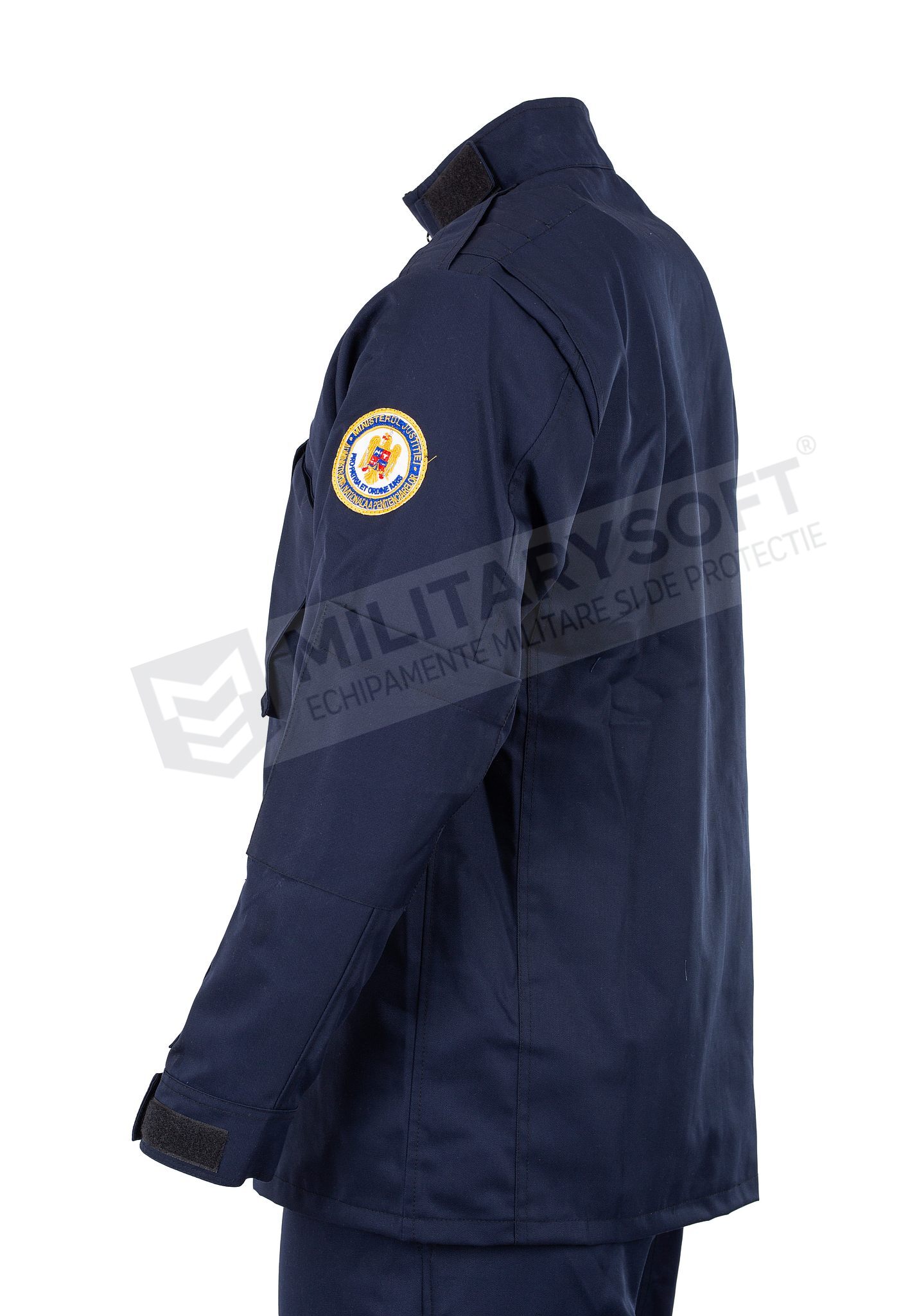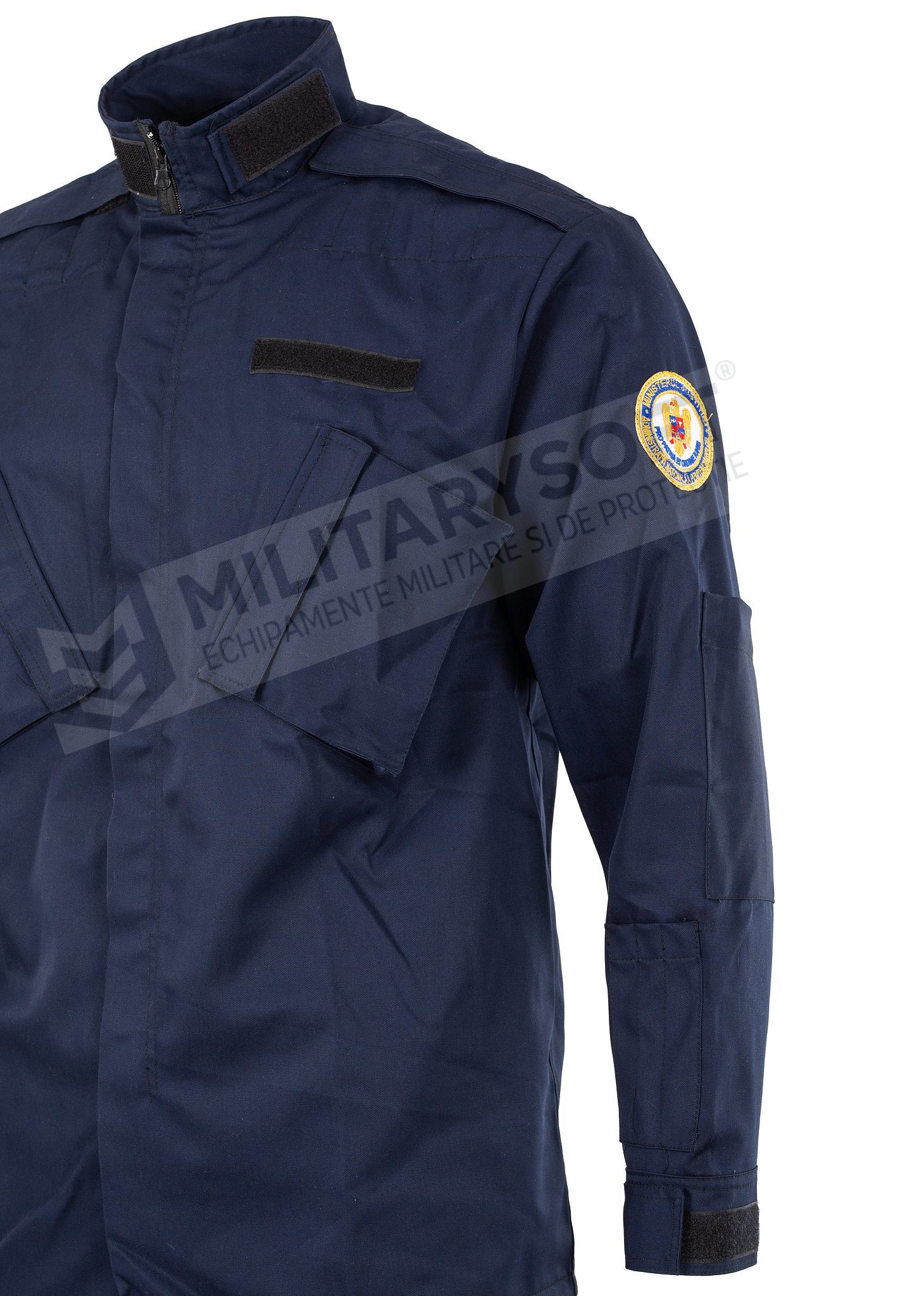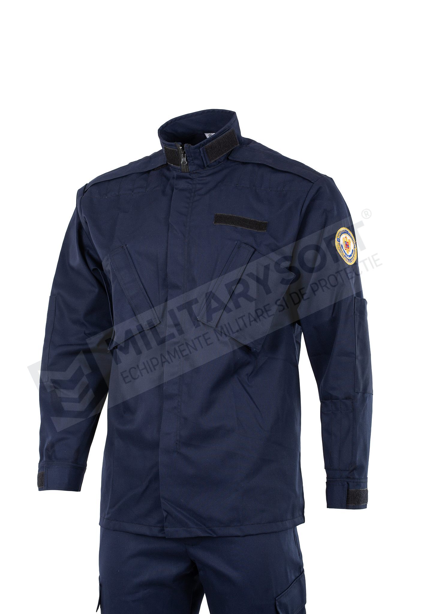 Bluza se realizează din țesătură tercot de culoare bleumarin-navy și este prevăzută cu epoleți, pentru purtarea gradelor, se încheie cu fermoar și se poartă introdusă în / peste pantaloni. Pe piept sunt aplicate două buzunare oblice, cu clape închise cu velcro la partea superioară. În partea stângă, deasupra buzunarului, se aplică suport tip velcro pentru ecusonul nominal brodat. Mânecile au la partea superioară câte un buzunar cu clapă.