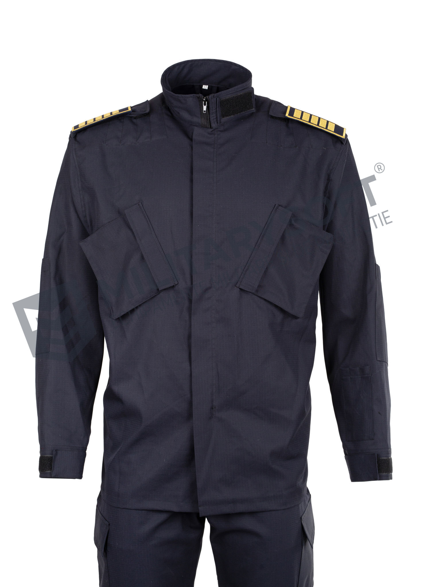 Bluza se realizează din țesătură ripstop de culoare bleumarin-navy și este prevăzută cu epoleți, pentru purtarea gradelor, se încheie cu fermoar și se poartă introdusă în / peste pantaloni. Pe piept sunt aplicate două buzunare oblice, cu clape închise cu velcro la partea superioară. În partea stângă, deasupra buzunarului, se aplică suport tip velcro pentru ecusonul nominal brodat. Mânecile au la partea superioară câte un buzunar cu clapă.