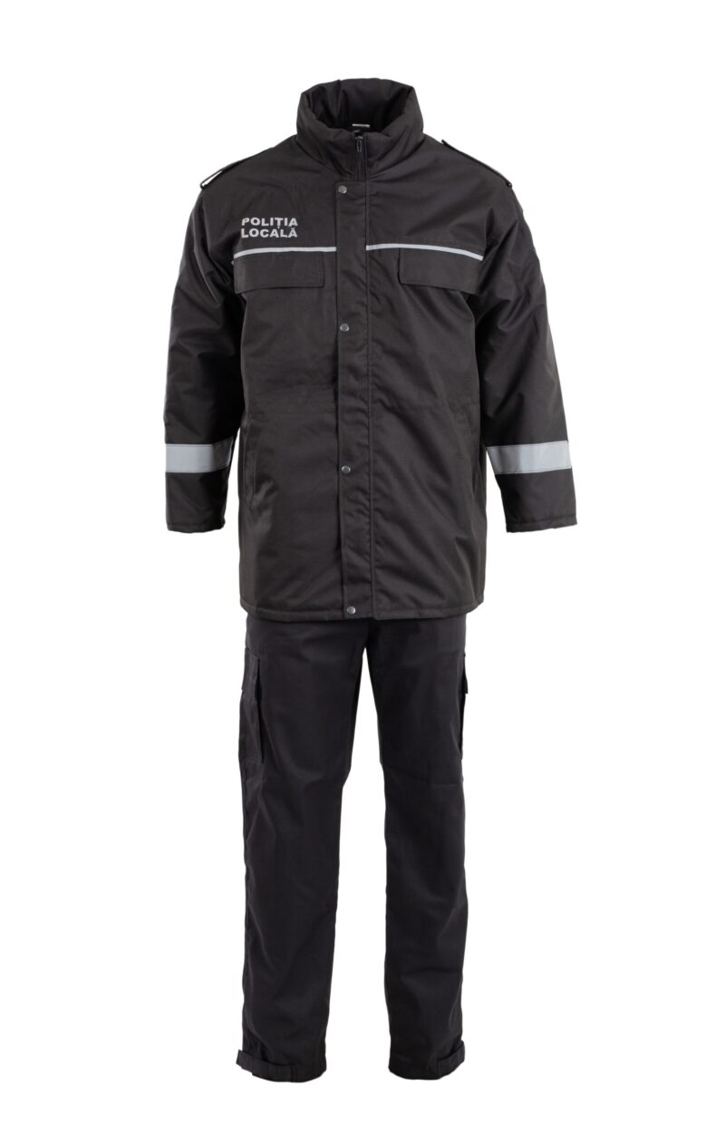 Guler înalt, epoleți pe umeri, spatele inscripționat POLIȚIA LOCALĂ .