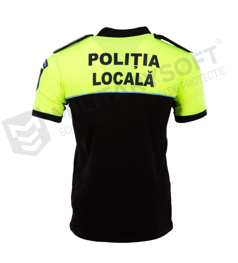 Imprimat pe fata si spate cu “Politia Locala” si atasata emblema Politiei Locale pe umarul stang.