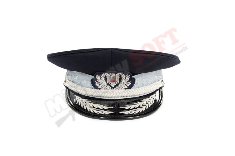 Pe exterior are o banda alba cu frunze ecaterina, pe care se aplica emblema specifica. Are prevazute frunze de stejar pe cozoroc
