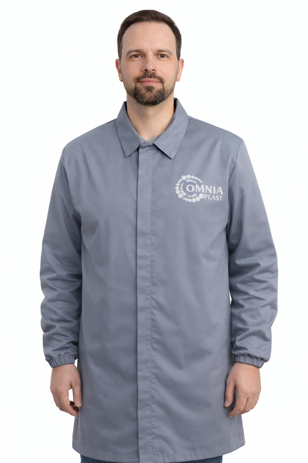 Fără buzunare exterioare – ideal pentru zone de producție, laboratoare sau spații unde se cer standarde ridicate de igienă și siguranță.