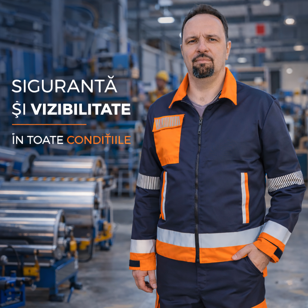 Descriere produs – Salopetă de lucru industrială cu vizibilitate ridicată
