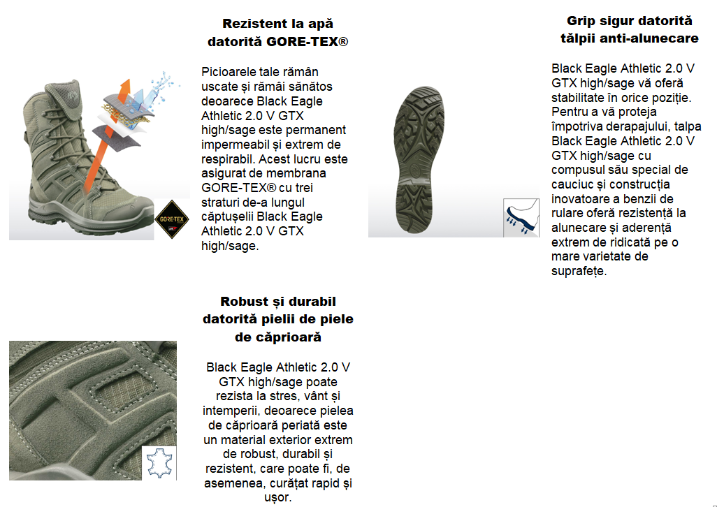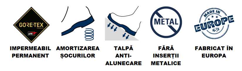 - Rezistent la apă: rezistent la apa datorită Goretex