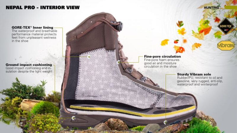 - Gore-Tex Laminate Technology: 4 straturi de Gore-Tex laminat, rezistent la apa si aerisit. Captuseala cu rezistenta ridicata la abraziuni si un strat de lana in mijloc. Comfort optimizat pentru orice sezon si folosire excesiva. Protectie chimica imbunatatita.
