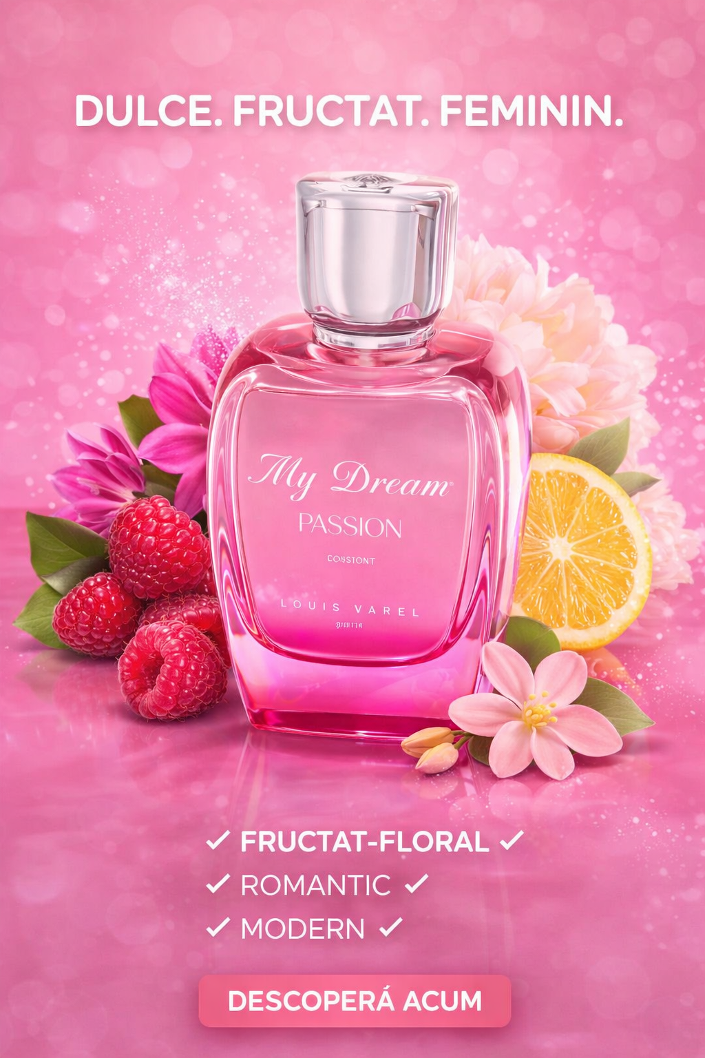 Apa de Parfum My Dream Passion – Louis Varel (90 ml) este un parfum feminin cu caracter fructat-floral dulce, creat pentru femeile energice și romantice care vor o aromă elegantă și memorabilă. Parfumul combină prospețimea fructelor cu note florale senzuale și o bază caldă, ușor orientală, care rămâne pe piele multe ore.