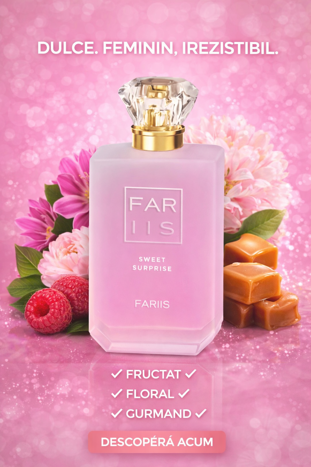 Un parfum care îmbină eleganța cu tentația dulce, Sweet Surprise este creat pentru femeia care vrea să iasă în evidență printr-o prezență delicată, dar memorabilă. Este genul de aromă care atrage complimente fără efort.