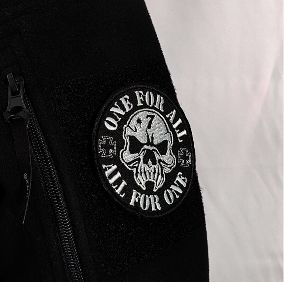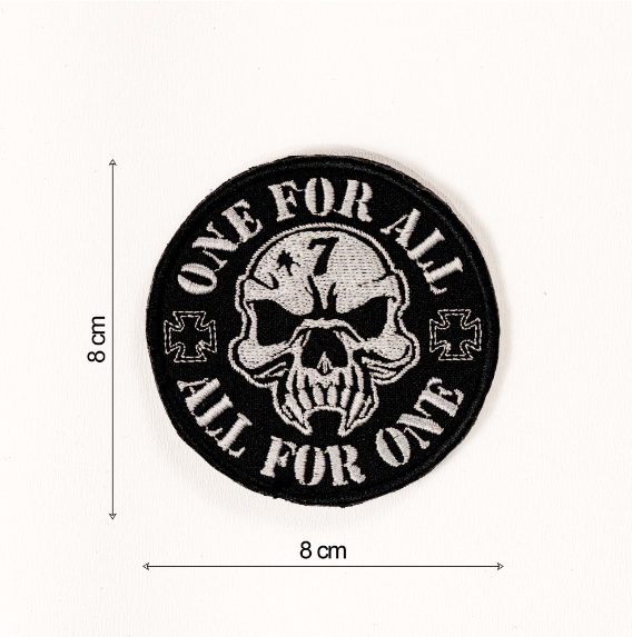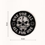Patch brodat – Schelet one for all, alb negru, 8×8 cm