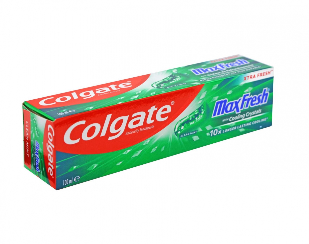 Colgate Max Fresh Clean Mint este o pastă de dinți sub formă de gel, cu efect puternic de răcorire care conţine fluorură de sodiu (sodium fluoride 0,24 %) ca ingredient activ pentru protecţie anticarii.