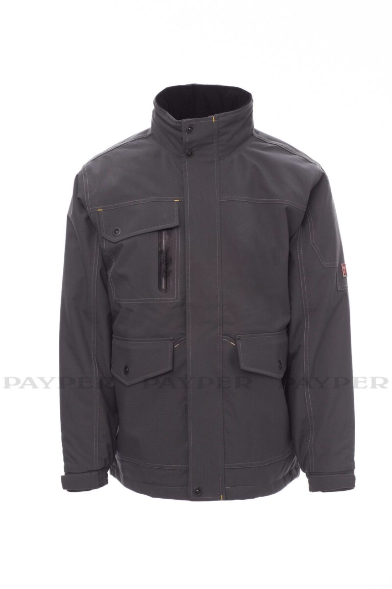 Jacheta pentru bărbaţi, buzunare reglabile, patru buzunare laterale, doua buzunare cu fermoar, doua buzunare la piept cu fermoar metalic.